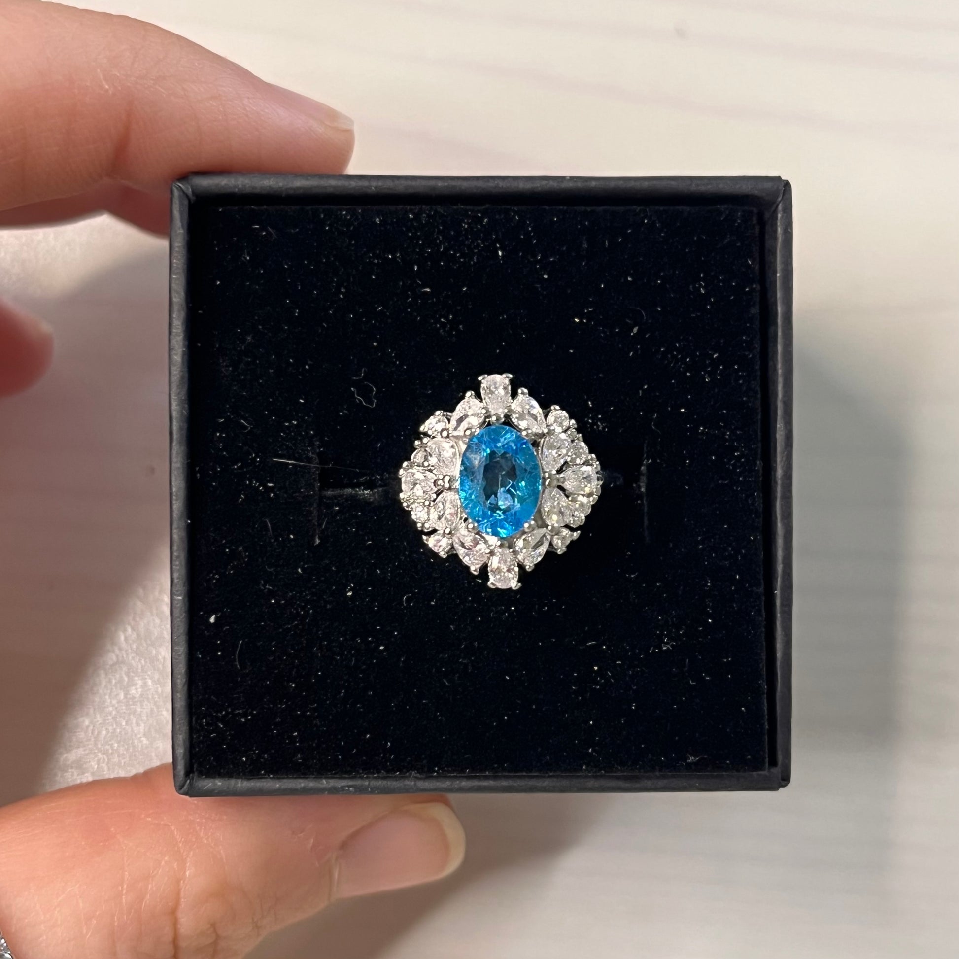 Anello in topazio e zirconi (rame placcato argento)