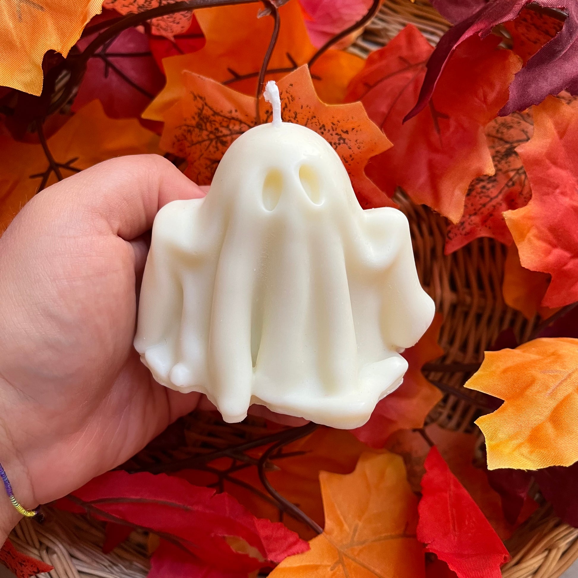 Candela artigianale decorativa a forma di fantasma con cera di soia