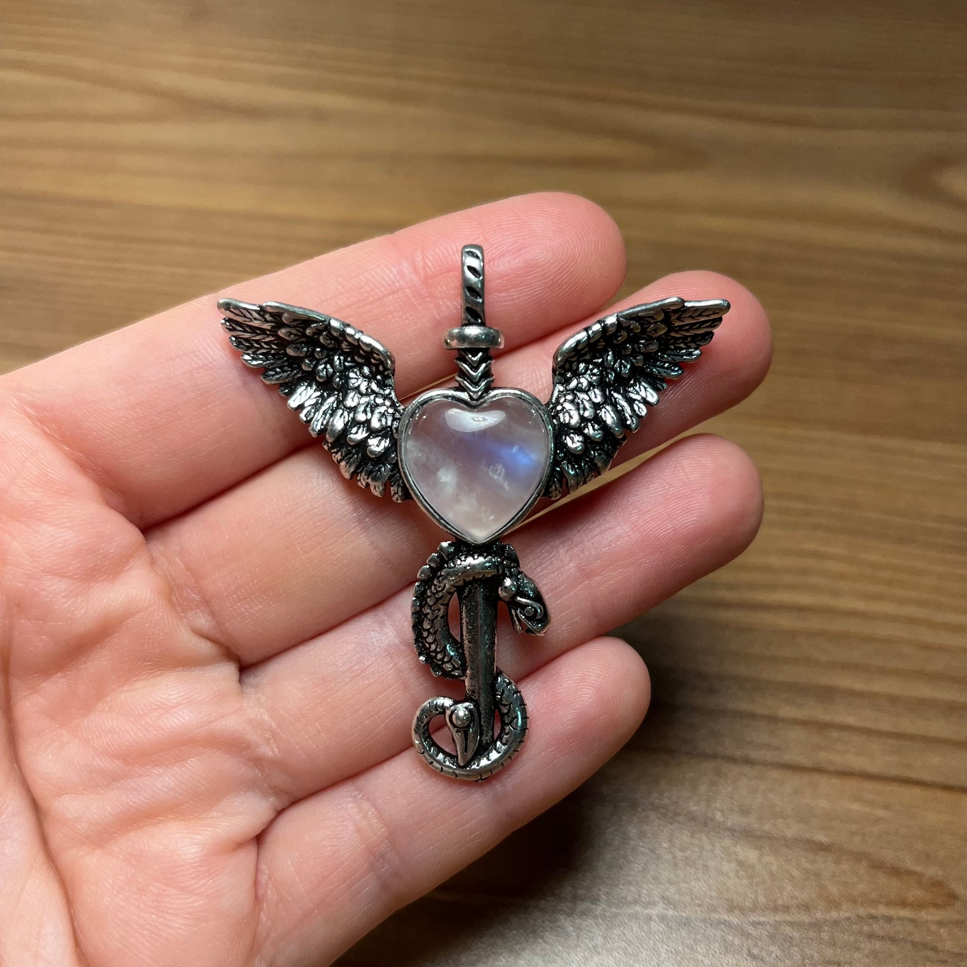 Ciondolo in acciaio inox con pietra di luna
