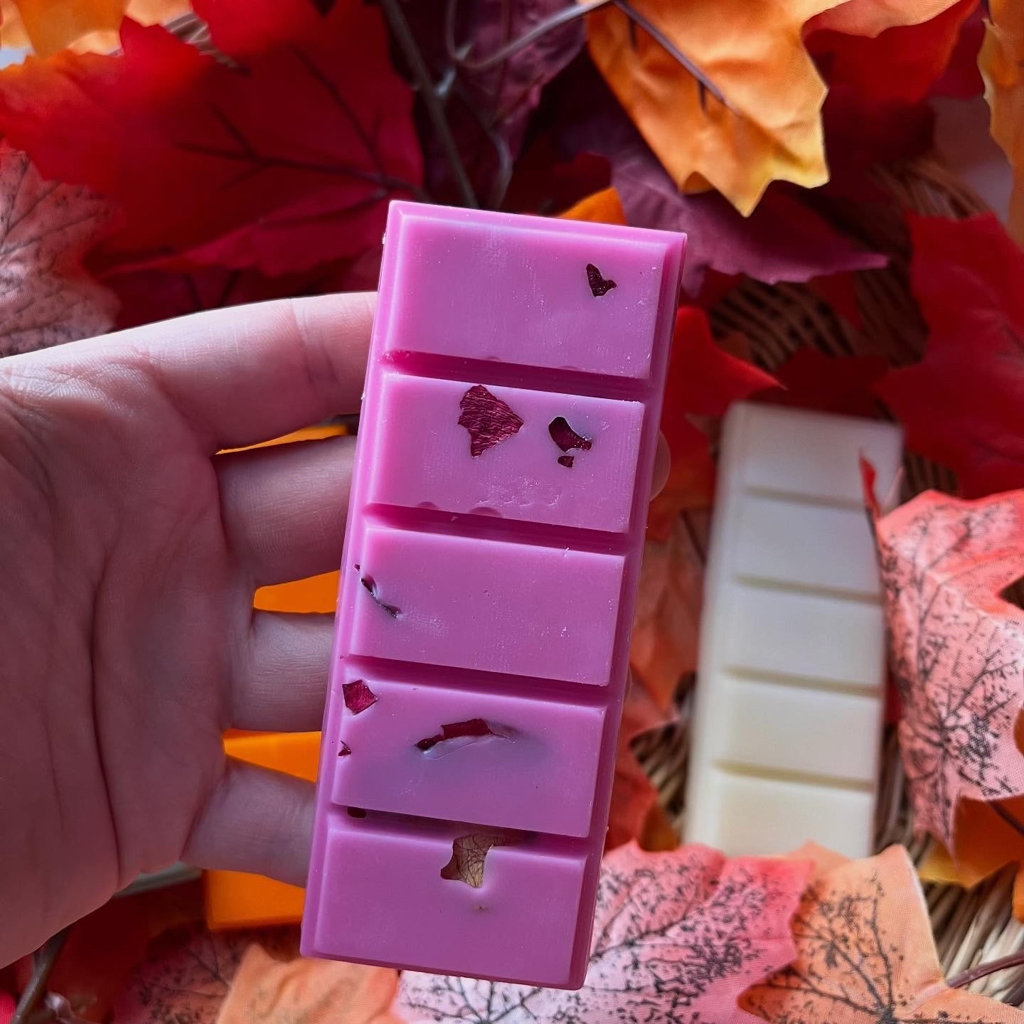 Ogni wax melt è fatta a mano con cera di soia e pesa 60g.